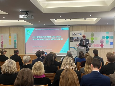 Thomas Wobben from the Secretariat General of the European Committee of the Regions (the EU institution representing the regional level in the EU), spoke about the NSPA regions’ role being at the centre of the green transition and industries. Referring to the evolving geopolitical landscape, he further mentioned the regions’ important role when it comes to security and resilience for a sustainable and resilient Europe. For Wobben, as with Vitcheva, NSPA was one of the first acronyms he encountered working with regional development policy in the EU arena. Building on Vitcheva’s message, he stressed the importance of maintaining the influence of regions in policies formulated at the EU level. He also expressed concern that the regional focus is losing priority as attention shifts more toward the national level—at a time when regions are more crucial than ever. He also stressed the importance of not only considering local perspectives but actively creating space for them in policy implementation.