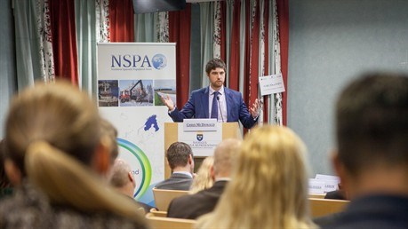 OECD Policy Analyst Chris McDonald presented key statements from the report, pointing out some of the challenges that the NSPA regions have in common: the population is aging, and there is a lack of job growth and infrastructure.