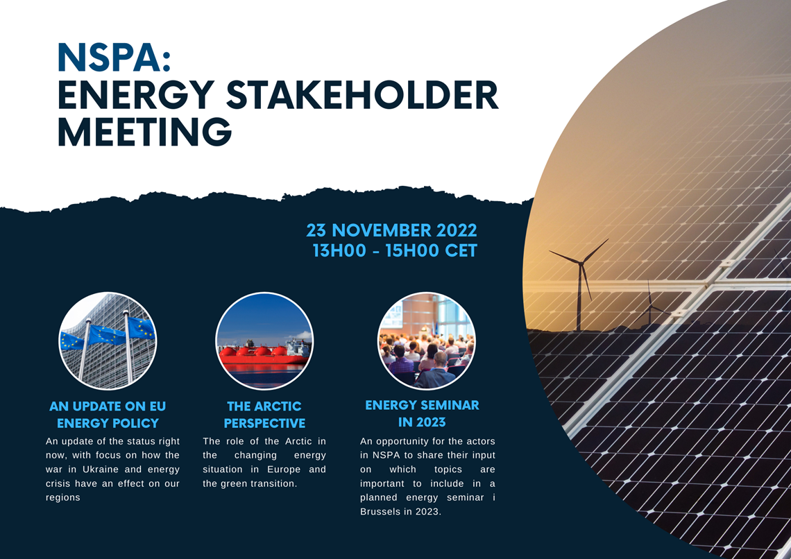 In addition, we will discuss the Arctic perspective, how can the NSPA regions contribute? Further, we are asking all participants to share their input on important topics for an energy seminar the NSPA is planning to have in Brussels in the spring of 2023.