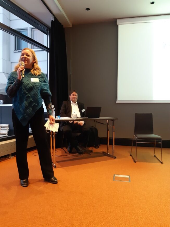 The opening words of the forum were given by Region Mayor of North Karelia Markus Hirvonen and Chair of the NSPA Steering Committee Päivi Ekhdal (pictured below). After welcoming the attendees to the forum, Hirvonen provided context for the forum and its area of focus: a rapidly changing political landscape characterised by recent and ongoing crises. Despite the challenges faced by the area, Hirvonen had a hopeful message for the future, one of working together to pioneer positive change by utilising our unique strengths.